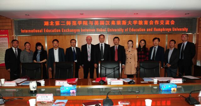 本网讯(记者陈思敏余江南)10月25日,美国汉弗莱斯大学(Humphreys University)校长罗伯特˙汉弗莱斯(Robert G.Humphreys)一行4人访问我校。在行政楼四号会议室,双方就校际交流项目进行了友好深入的交流。副校长夏力出席,国际交流合作处处长刘晖主持会议。