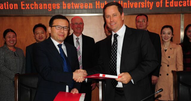 最后,夏力与罗伯特·汉弗莱斯签署了两校合作意向书,确立两校未来合作的基本框架。会议结束后,罗伯特·汉弗莱斯一行参观了我校教师素质训练中心,对我校师范生教师职业技能训练课程体系、实验环境和创新做法给予了高度肯定。