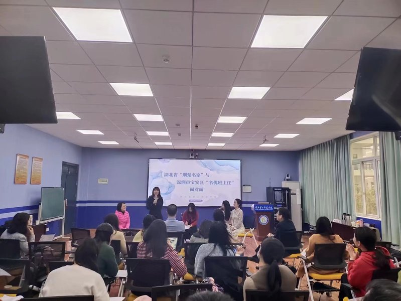 本网讯(通讯员 方菊 张婧)2023年3月29日下午,深圳市宝安区小学名优班主任高级研修班学员在湖北第二师范学院S5209参加名班主任成长沙龙活动,长江班主任研究中心主任曹斯出席本次沙龙活动。