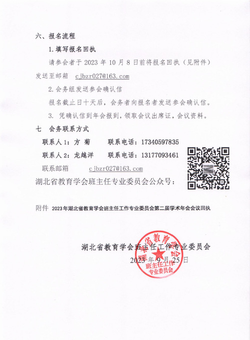 我们诚挚邀请各位老师参加湖北省教育学会班主任工作专业委员会第二次学术年会,期待与您共享学术盛宴。通知文件如下: