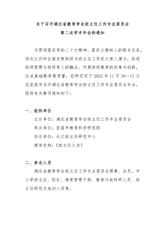 【会议通知】关于召开湖北省教育学会班主任工作专业委员会第二次学术年会的通知