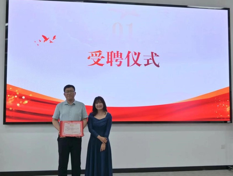 图为长江班主任研究中心主任曹斯为《班主任》杂志副主编杨丙涛颁发聘书