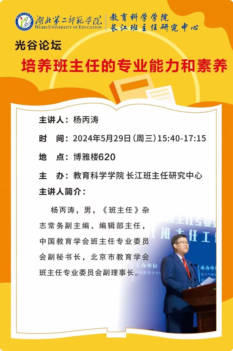 【讲座通知】光谷论坛:培养班主任的专业能力和素养