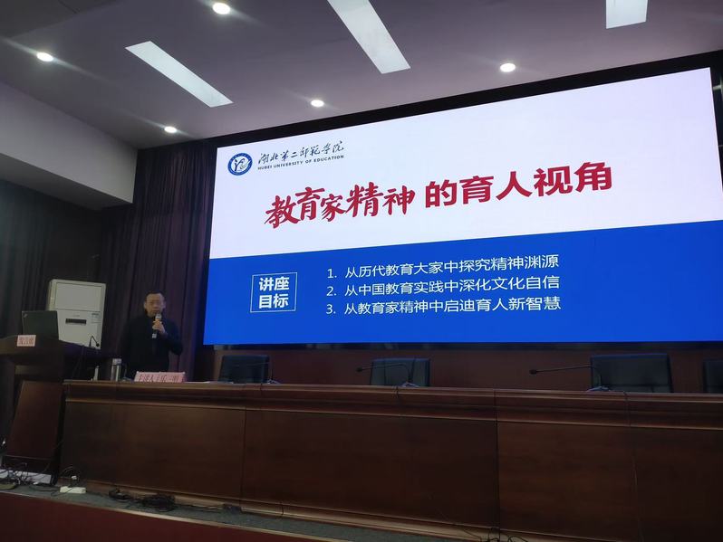 讲座伊始,乐三明阐述什么是中国特有的教育家精神,他表示,中国教育家精神是在中华传统师道文化沃土中生长出来的,展现了中国教师看待世界,看待人生,看待教育的价值观念和文化内涵,是中国教师有别于其他国家教师的重要特征,铸就了中国教师特有的精神品质。中国是社会主义国家办教育,“培养什么人”始终是教育的根本问题。培养德智体美劳全面发展的社会主义建设者和接班人,人民教师要有“以天下为己任”的弘道追求——弘扬教育家精神,争做“四有好老师”。