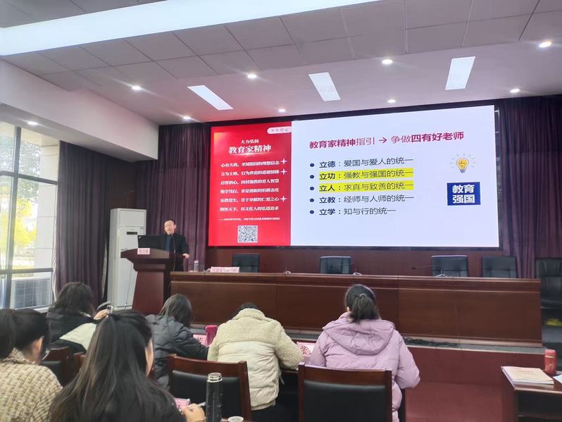 本网讯(通讯员 饶诗锐)为传承和弘扬优秀的教育传统,为教育改革和发展提供精神动力。12月14日上午,随州市高新区教育家精神的育人视角及班主任践行活动顺利开展,邀请湖北第二师范学院教育科学学院党委书记乐三明进行专家讲座,随州高新区的全体班主任参与。